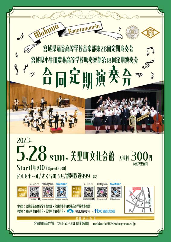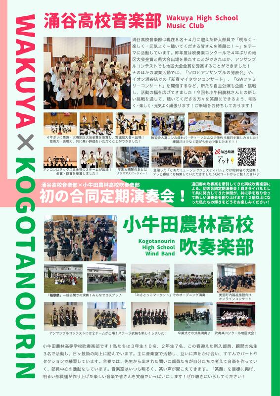 今年度は初の小牛田農林高校吹奏楽部との合同開催となります!