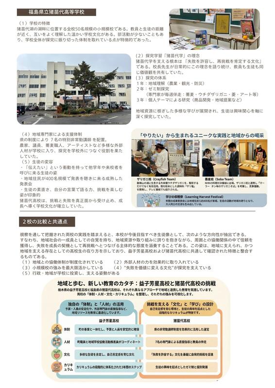 また、生徒の挑戦を温かく受け止める学校文化や、地域の方々が学校の学びを支える体制など、多くの示唆を得ることができました。