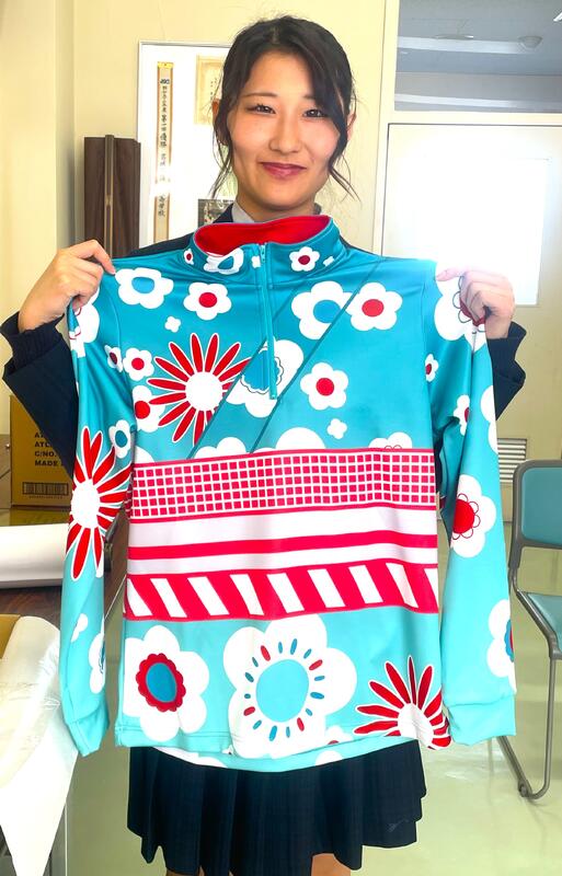 3年・菅原華愛さんが「最優秀賞」を受賞した「トンボ1129(いいふく)デザインコンクール」の受賞式&デザインジャージが到着!繊維ニュース新聞にも掲載されました!