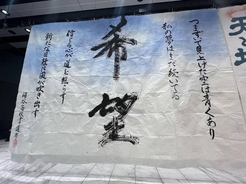 東北六県書道交流展に参加し作品を展示しました 投稿日時 : 04/20 職員25 カテゴリ: 年度末に仙台メディアテーク(3月20日~22日)と松島の瑞巌寺(3月24日~29日)を会場に東北六県書道交流展があり、文化祭で制作した6メートル×4メートルの大作品を展示しました。また、タテ5メートルの作品も制作して展示しました。各県の書道部のみなさんの迫力ある作品と一緒に私たちの作品も展示出来て光栄でした。 Tweet